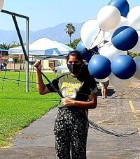Distance learning did not stifle that event this year. In August, students had the opportunity to play online get-acquainted games via Zoom, followed by an in-person drive through (think Chick-fil-A). Almost 60 families came by (many with two or three students in the family) to pick up delicious pizza, mango and strawberry sorbet, boba, and water before driving to the next booth to have their picture taken and pick up their yearbooks that they were unable to get in June.
