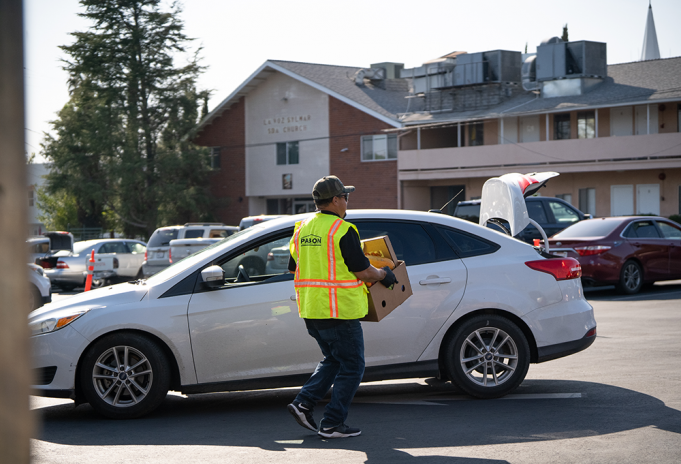 The efficiency of the operation makes for a quick service that continues until food runs out. As cars continue to trickle in during tear-down, additional food boxes are assembled from whatever is left—the team tries to avoid letting anyone leave empty-handed. “People from different backgrounds, they come here with different cases and situations, and we always give something to them,” said Calderon. “Always, always.”